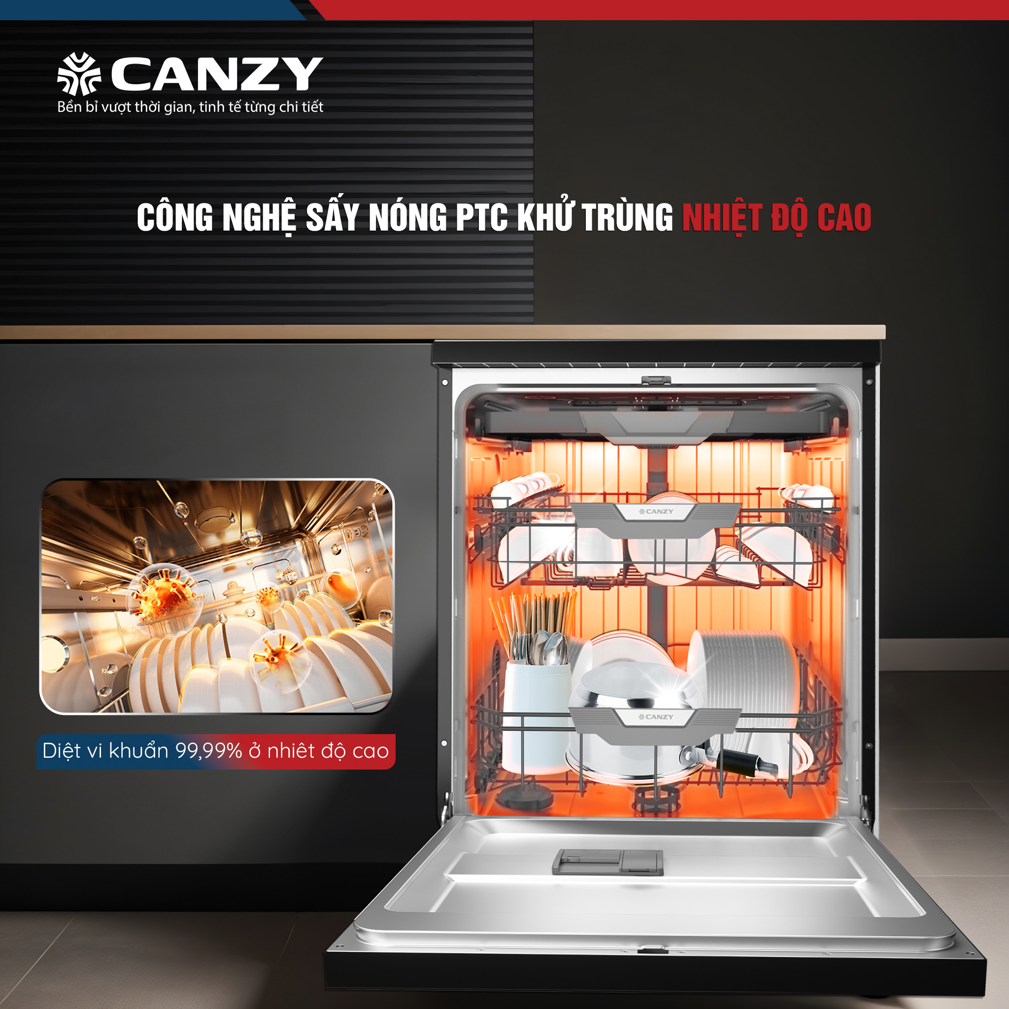 6. Công nghệ sấy nóng khử trùng PTC trên máy rửa bát Canzy CZ-DGA15EU JUMBO