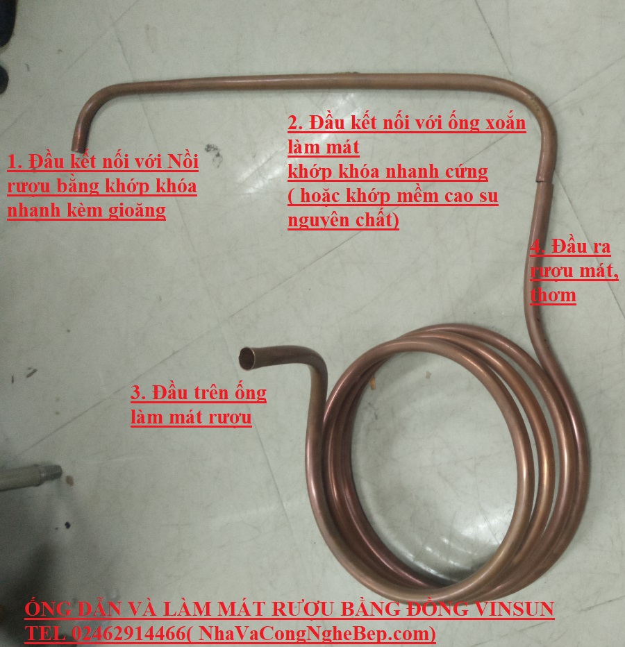 - Ống dẫn rượu và ống xoắn làm mát: đồng vàng nguyên chất dày 0.8 mm