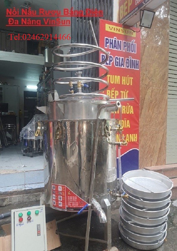 Nồi nấu rượu bằng điện VinSun sản xuất bởi Cty ứng dụng công nghệ VN đạt TCVN 7704:2007 về nồi hơi( thiết kế nồi hơi chuẩn, kết cấu nồi nấu rượu 3 lớp chắc chắn, chế tạo chính xác, lắp đặt dễ dàng, sử dụng và sữa chữa nồi hơi nấu điện thuận tiện)