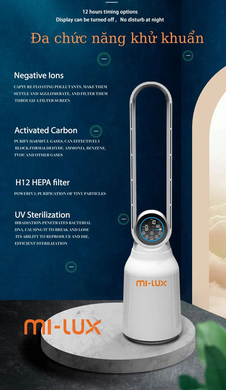 Quạt Mi-Lux A4 Pro không chỉ đơn thuần là một chiếc quạt. Sử dụng động cơ DC không chổi than tiên tiến, quạt tạo ra luồng gió mạnh mẽ nhưng cực kỳ êm ái, với 12 cấp độ gió tùy chỉnh. Bạn sẽ không còn phải chịu đựng tiếng ồn khó chịu, thay vào đó là không gian thư thái, lý tưởng cho những giấc ngủ sâu hay những giờ làm việc tập trung. Đặc biệt, thiết kế không cánh an toàn tuyệt đối cho trẻ nhỏ và thú cưng, giúp bạn hoàn toàn yên tâm.